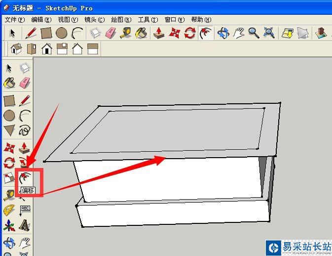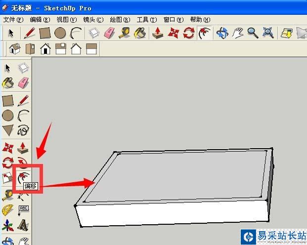 5、再次選中偏移工具,鼠標點擊頂面,并拖動出一個向外的偏移,鍵盤設置偏移量后點按回車確定