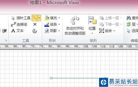 2、我們在繪圖頁中繪制一條長的線,如圖所示,長度我們可以自己設定