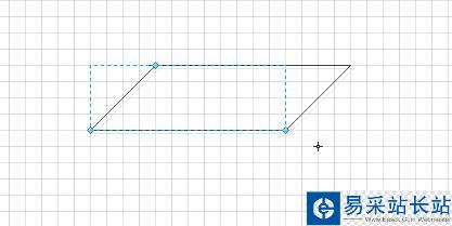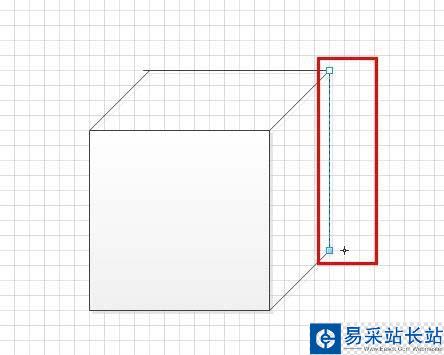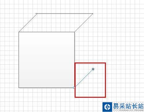9、接下來在繪制好的正方形右下端形向上拉一條45度的直線