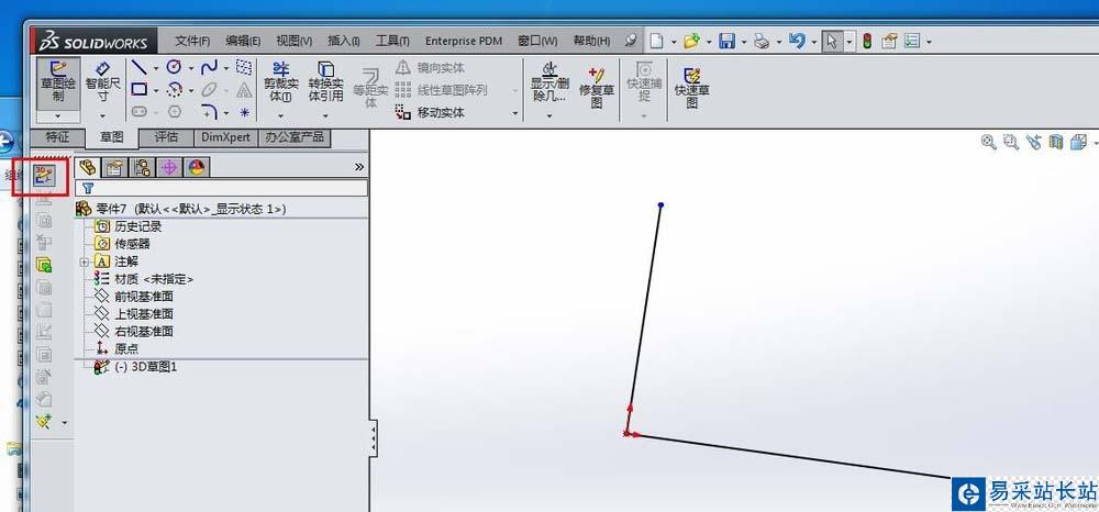 3、繪制3D草圖:3D草圖(同繪制2D草圖一樣,注意空間相對的位置及尺寸)