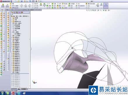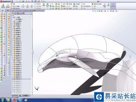 5、接下來補好腹部的曲面和尾部的面,由于海豚的尾部不是圓形的,而且腹部與尾部有明顯的分斷點,這里簡單的在原3D草圖里分割好就行了