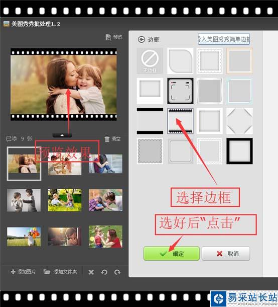 7、點擊“邊框”后,就會出現各種各樣的邊框讓我們選擇,我們選擇一款我們喜歡的邊框。