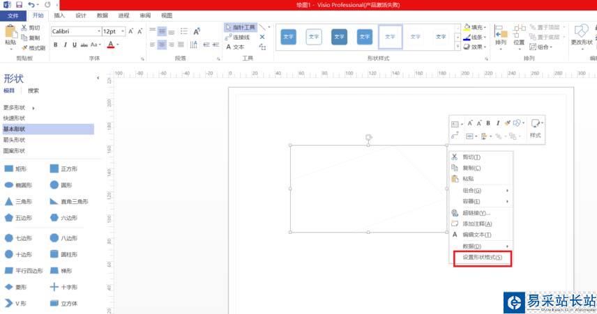 5、填充顏色:選擇圖形,右鍵單擊,選擇設置形狀格式。
