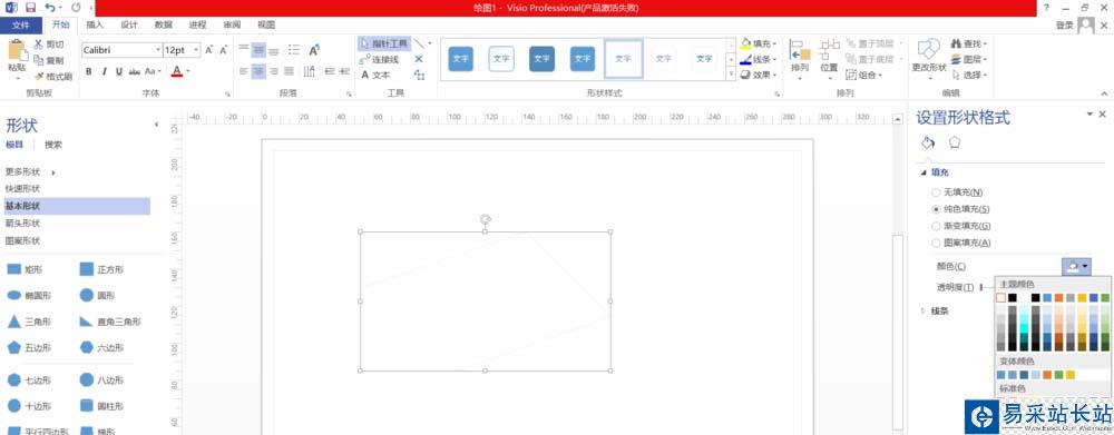 6、設置形狀格式:在填充一欄選擇純色填充,顏色根據喜好設置即可。