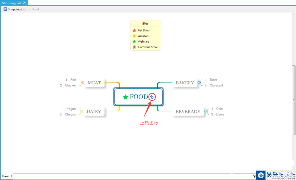 注: 在下鉆狀態下添加的自由主題,在上鉆之后,不會在圖中顯示出來。僅僅有一個“下鉆”的標志,表明此主題還有一些其他的相關內容僅在下鉆狀態下顯示。