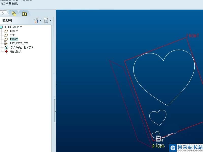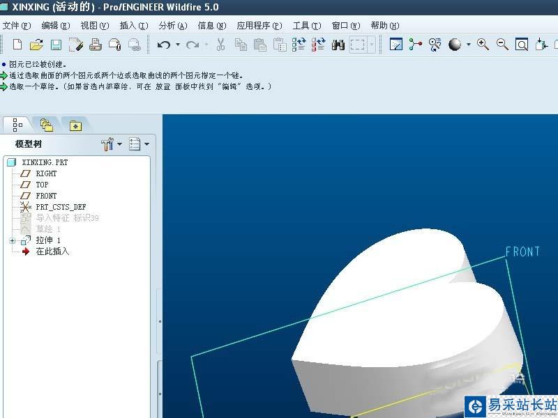 3、使用復制邊命令,草繪和拉伸心形文件。