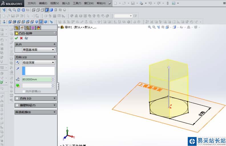 7、草圖完成后拉伸草圖,確定你要拉伸的高度,如下圖