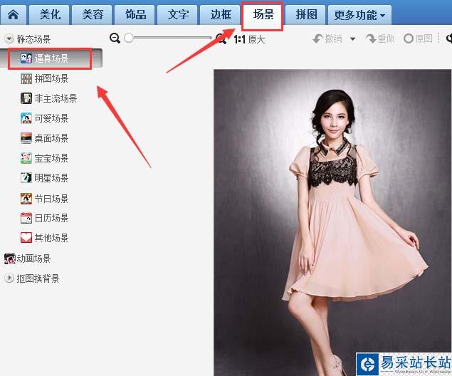 6、點擊逼真場景選項,在右側(cè)找到我們需要的場景選項,如圖所示: