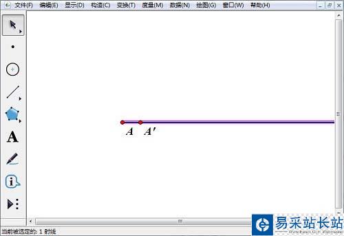 2、構造射線。先選中A點,再選中A’點,在“構造”菜單中選擇“射線”構造射線AA’。