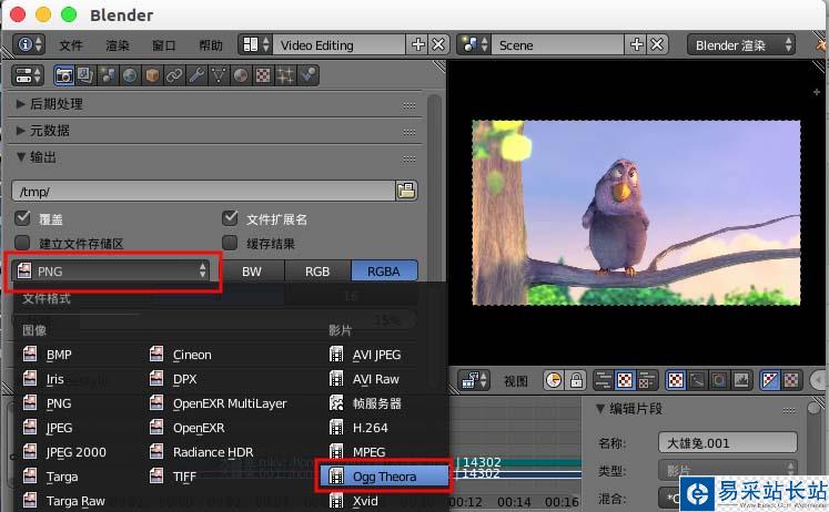 6、既然要導出視頻,當然需要選擇導出格式,選擇默認的“PNG”改為“視頻格式”,像MPEG、Ogg等。