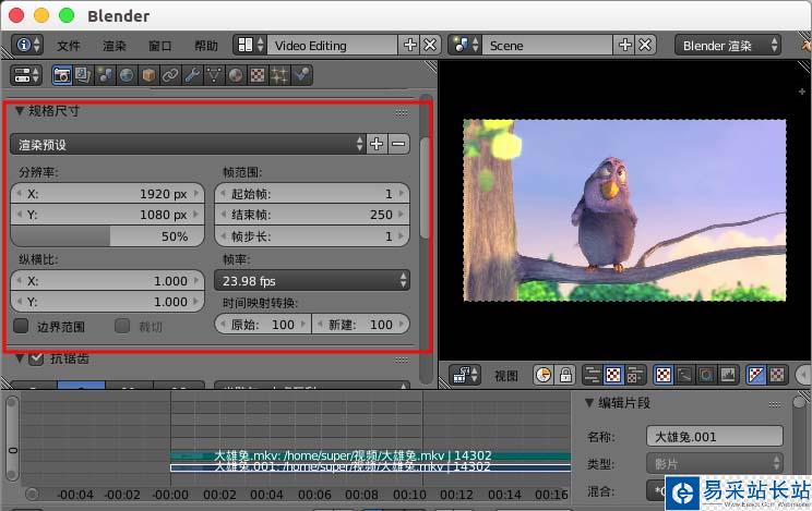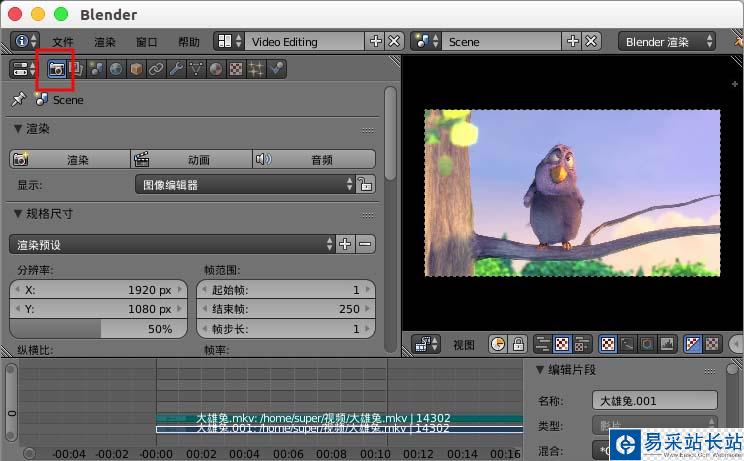 使用blender進行視頻裁剪編輯后,想要導出的話,需要在屬性中設置視頻相關(guān)的信息,然后才可以導出。
