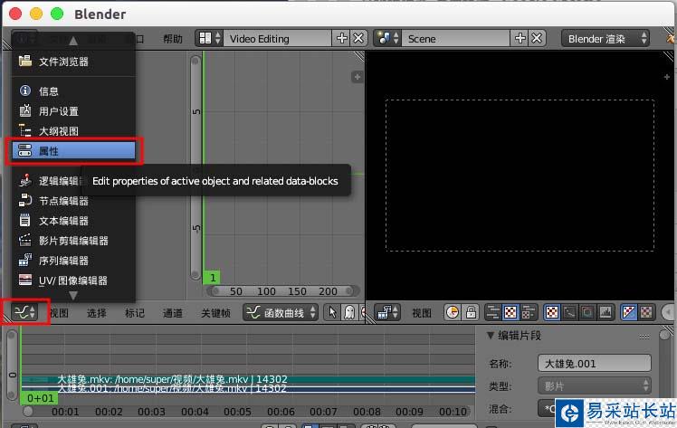 1、blender中視頻編輯完成后,我們可以切換到“屬性”窗口。