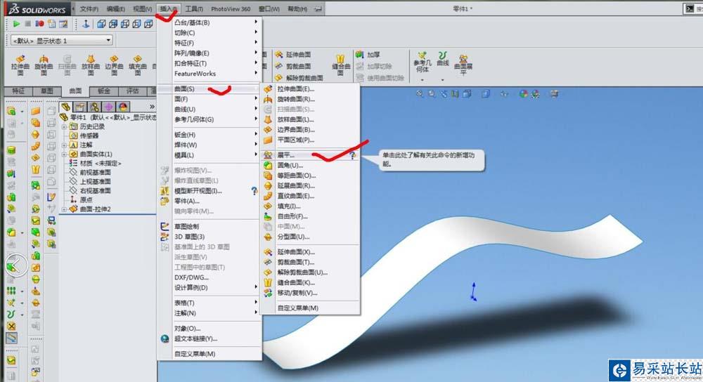 SolidWorks2015在曲面方面有很大的改進(jìn),比如:曲面展平,下面介紹一下曲面展平用法。
