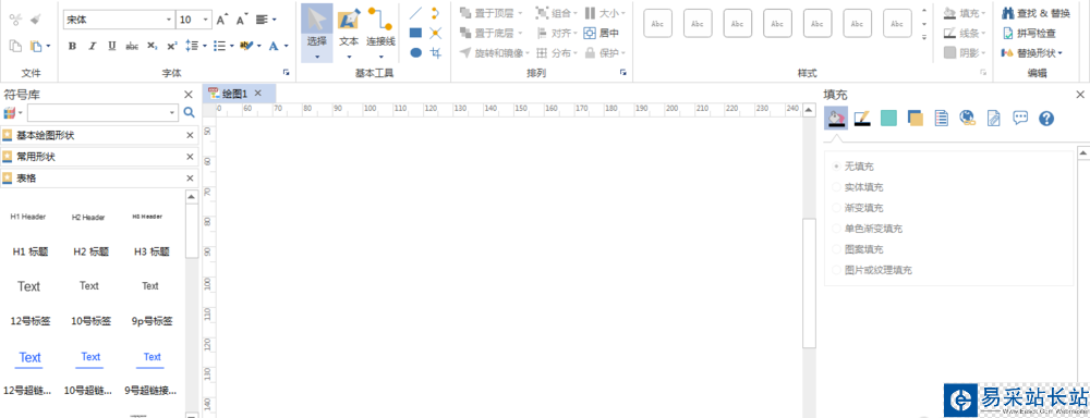2、點擊“創建”圖標,新建空白的畫布,查看左側基本元素,如下圖所示: