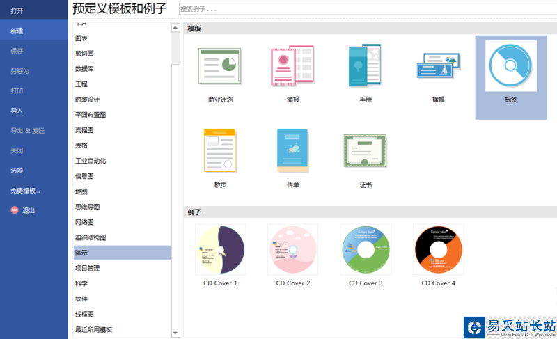 1、雙擊打開Edraw Max設計軟件,依此操作“新建--->演示--->標簽”,如下圖所示: