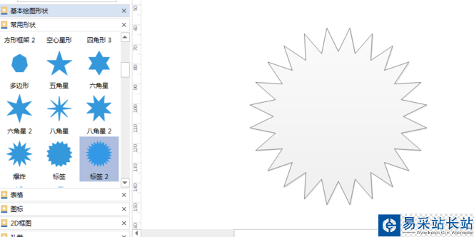 3、在“常見形狀”中找到“標簽2”,拖一個到畫布上,如下圖所示: