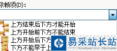 4)點擊任務面板中依賴項后的倒置三角,選擇關系類型;