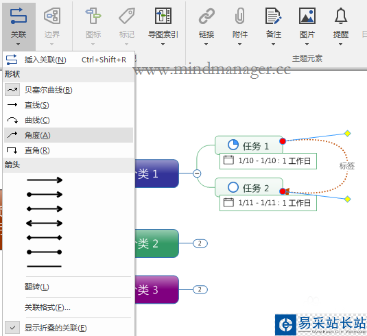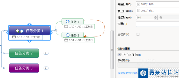 在MindMananger中管理的任務往往不止一個,有時候任務之間會存在這樣那樣的聯系。這種情況下,用戶可以通過添加關系線來表明“聯系”;如果任務執行存在先后聯系,還可以為其設置依賴關系。本文,小編以MindManager 2017為基礎,演示任務存在聯系時,如何為任務添加關系線和依賴關系。