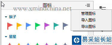 XMind本身提供了豐富的圖標供用戶嵌入到各種主題中,方便用戶設計美觀、簡潔的思維導圖。為滿足的多樣化需求,XMind提供了用戶自行導入/導出圖標的功能,用戶能夠將常用的圖標直接添加到XMind圖標庫中,提高工作效率