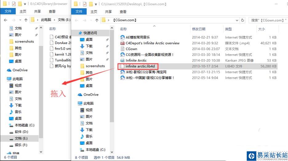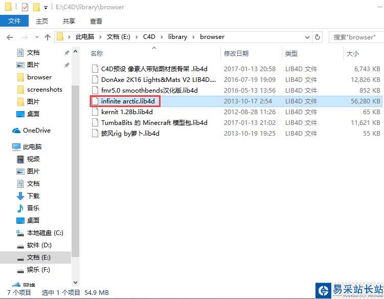 5、將我們之前的.lib4d格式的文件拖入到X:/C4D/library/browser內,預設便導入成功了。