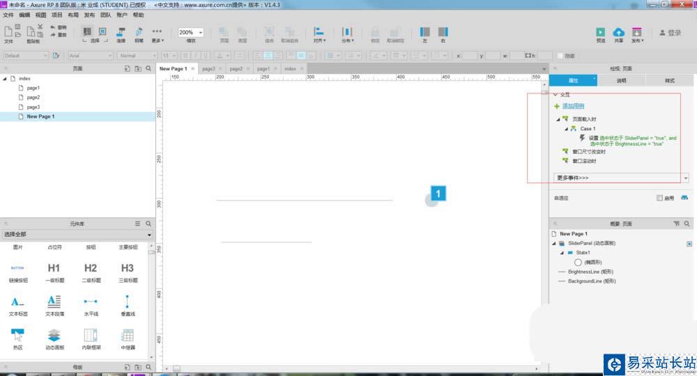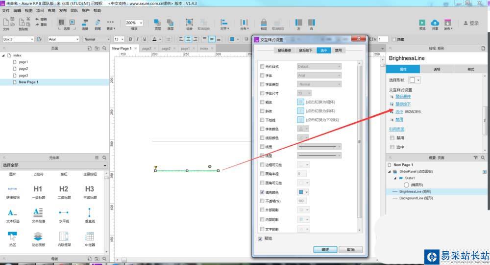 6、下面一步,對頁面加載的交互事件進行設置,將對應的元件設置成選中狀態,如下圖所示。