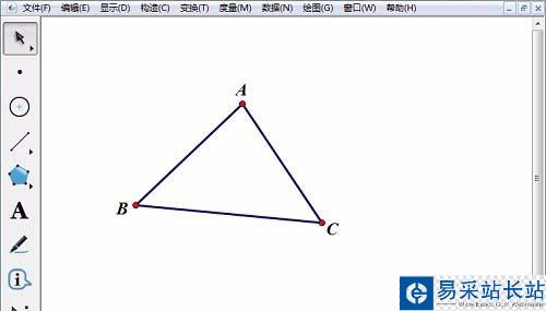 1、選擇“線段直尺工具”,作出三角形ABC,如下圖所示。