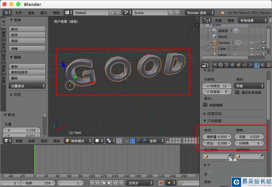 11、現在我們shift+z渲染預覽下,看看文字效果。