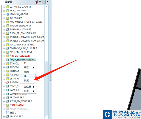 7、右擊隱含的零件,選擇恢復(fù)就可以出現(xiàn)在視圖中