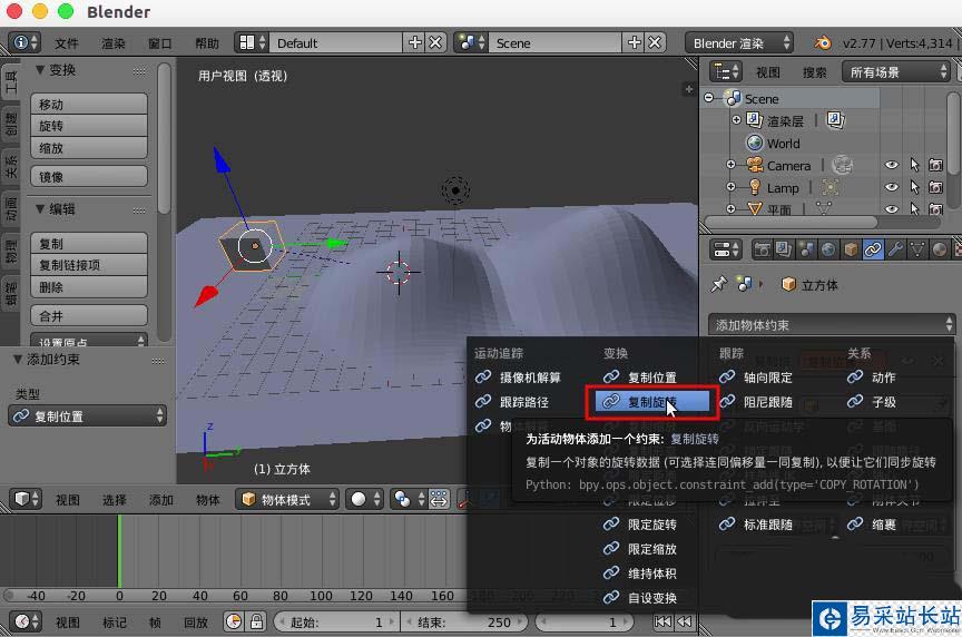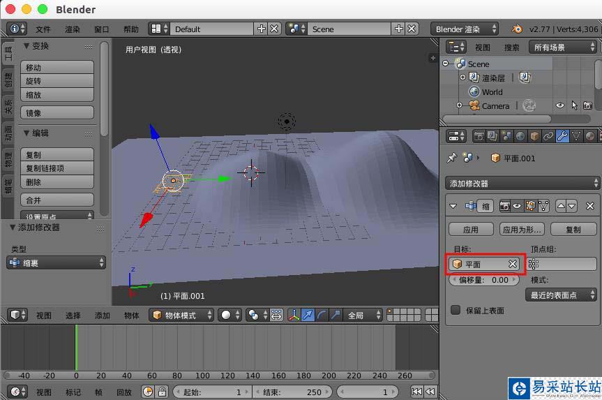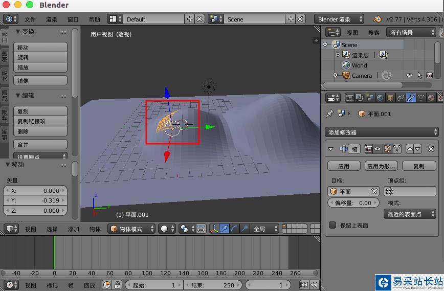 汽車要在地面上跑,船要在海面上行駛,blender中要制作物體在凹凸不平的“地面”上運動,可以通過約束與縮裹修改器等實現。