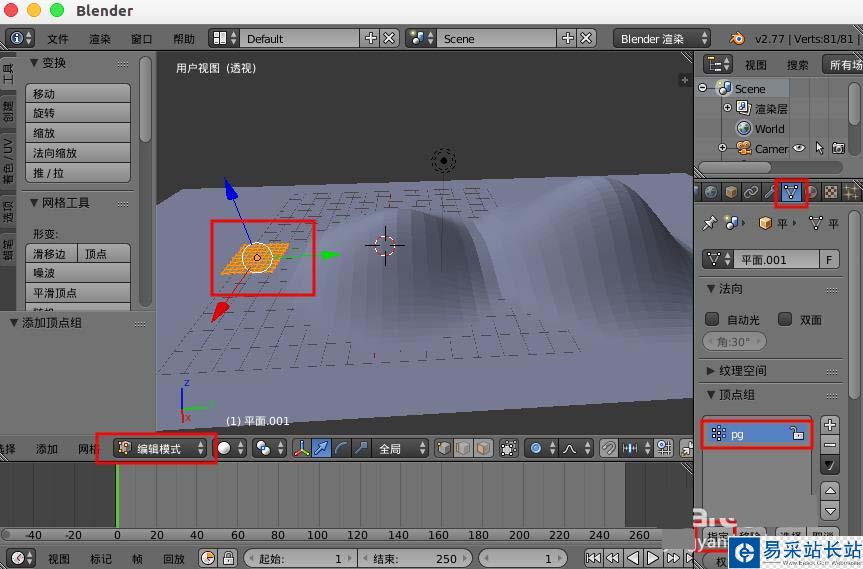 2、進入“編輯模式”,選擇右邊的屬性導航中的“數據”,添加“pg”頂點組。