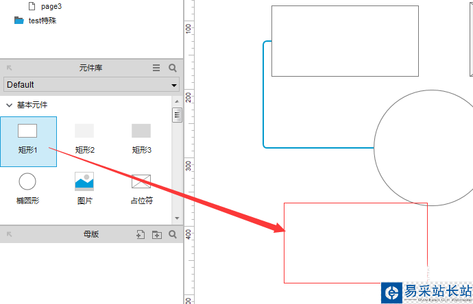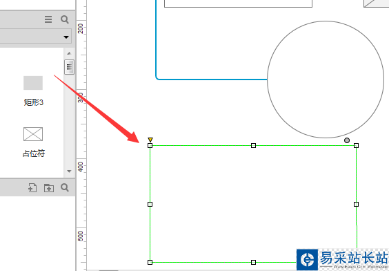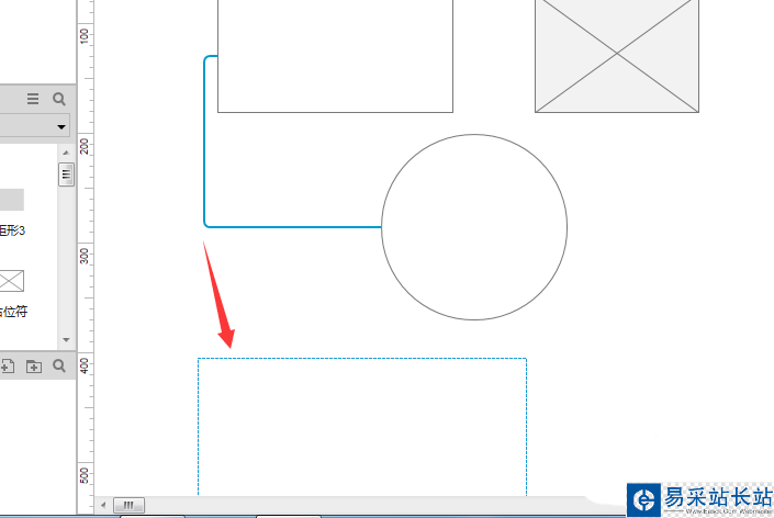 4、選中了矩形的選項之后,然后拖動到了交互設(shè)計空白處的位置。