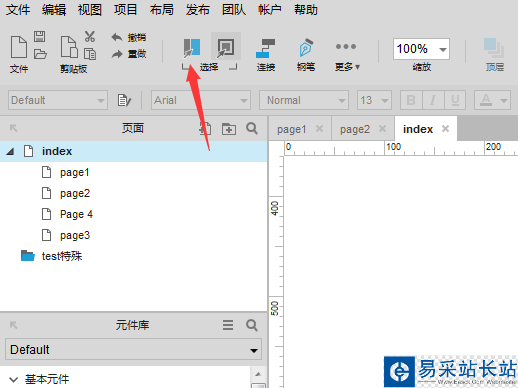 1、首先,打開一個Axure8的交互設(shè)計的功能進入到界面當(dāng)中,點擊選擇的選項。