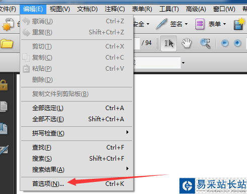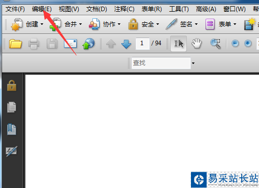 2、進行點擊了的Adobe Acrobat的菜單中的編輯的菜單。