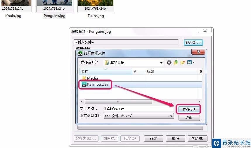 6、選擇一個音頻素材,然后單擊“保存”按鈕。