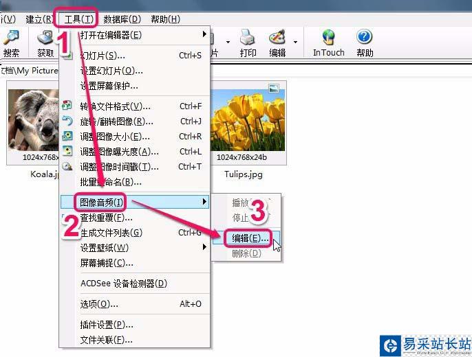 3、打開“工具”菜單,選擇“圖像音頻”中的“編輯”命令。