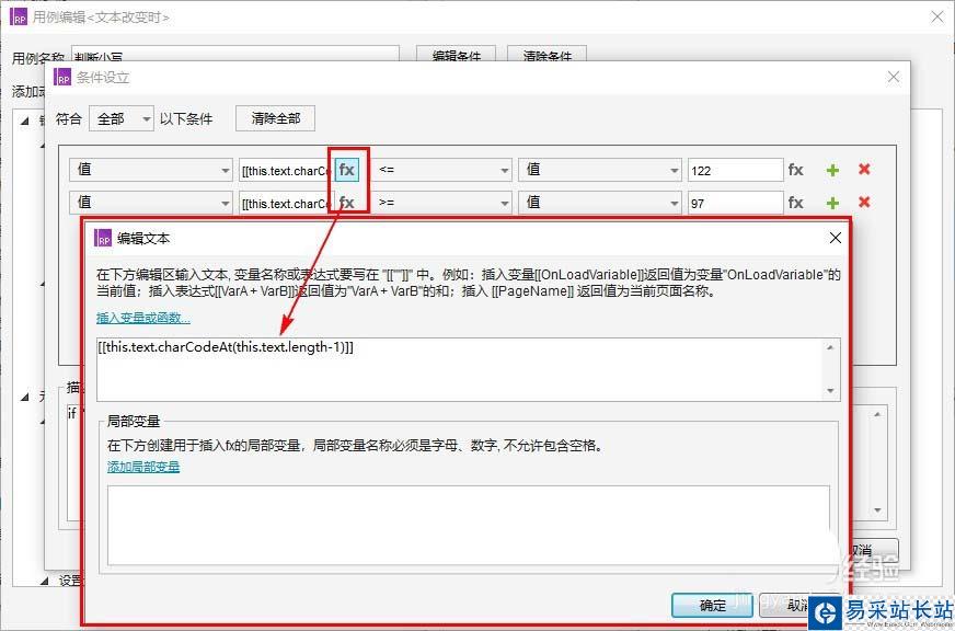 4、布局完成后,就是針對“文本框”的“文本改變時”做相應的驗證動作設置,這里最主要用的到函數就是:charCodeAt(index),用來獲取按鍵的ASCII碼