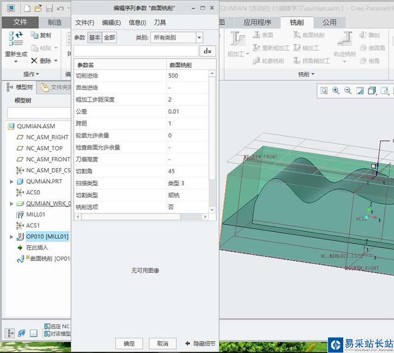 6、彈出”編輯序列參數(曲面銑削)“對話框,按下圖設置參數。