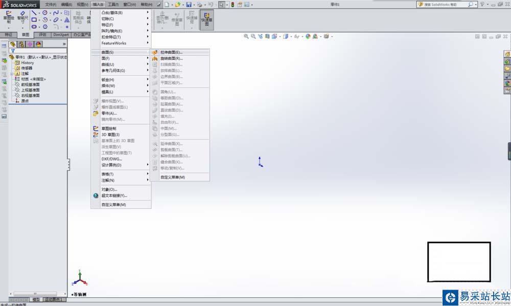 2、激活“拉伸曲面”命令,方式:執行【插入】【曲面】【拉伸曲面】,具體見下圖。