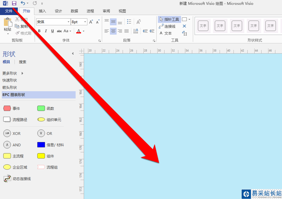 1、啟動visio2013,將visio2013的界面,設置為天藍色,作為文字的背景。