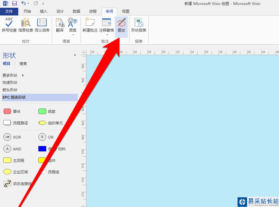 3、在visio的審閱功能下,點擊墨跡按鈕。