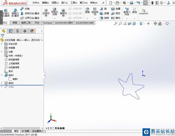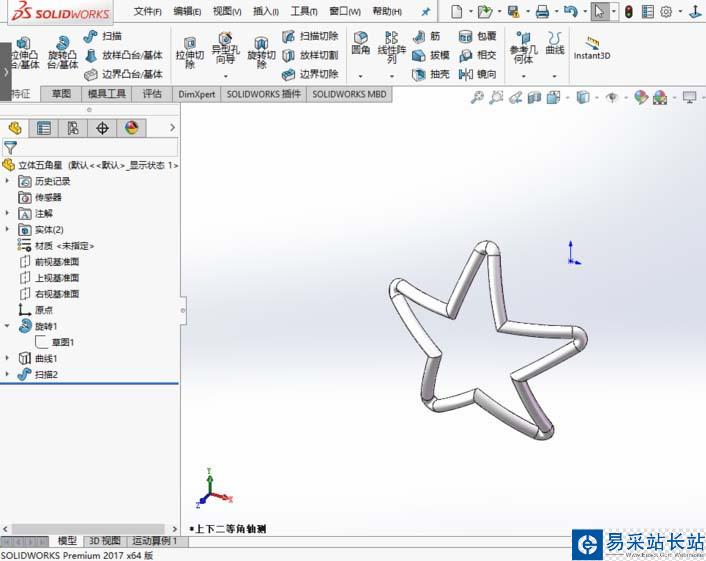 solidworks2017中創建三維圖形很簡單,想要畫球面五角星,該怎么畫呢?下面我們就來看看詳細的教程。