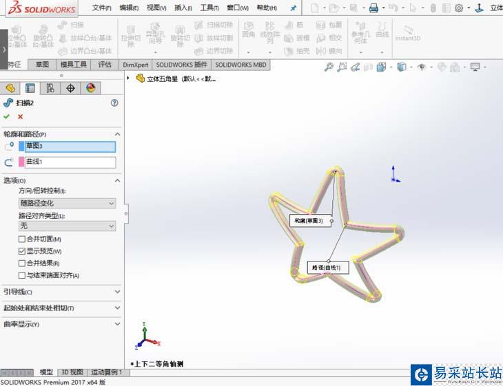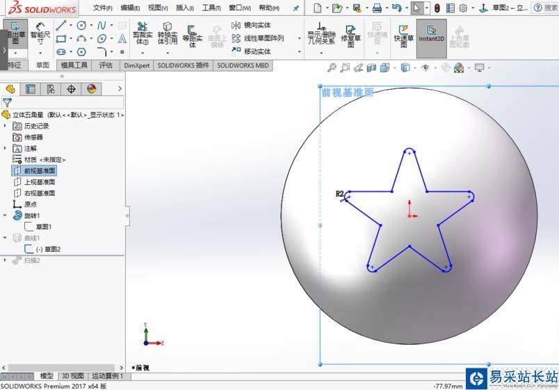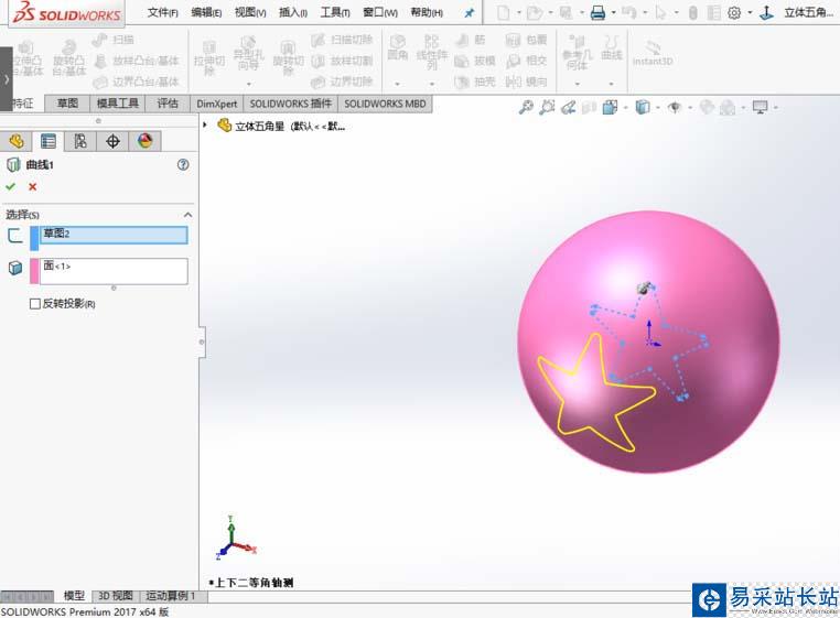 以上就是solidworks2017創建球面五角星的教程,希望大家喜歡,請繼續關注錯新站長站。