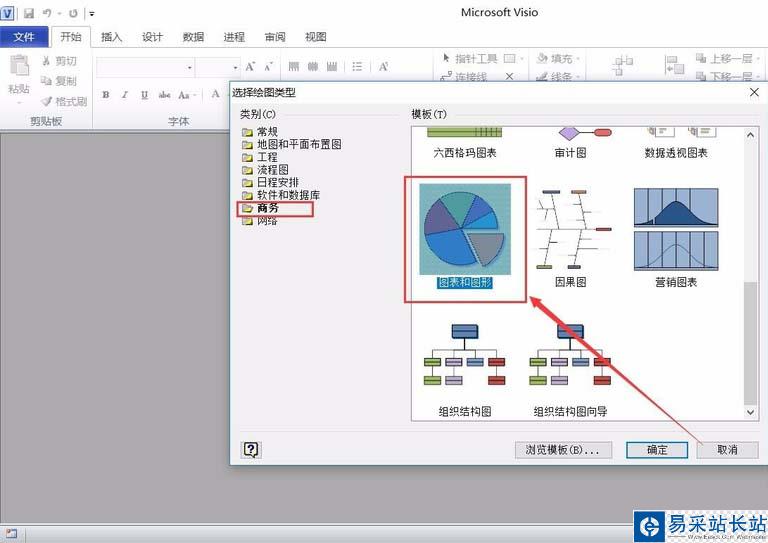 1、在選擇繪圖類型中依次點擊商務(wù)、圖表和圖形。