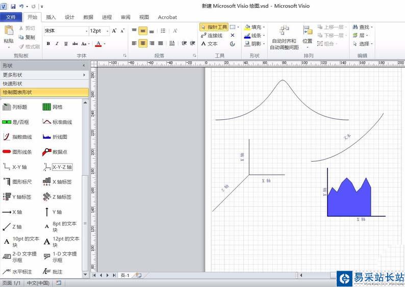 7、最后是線圖,可以使用VISIO繪制標(biāo)準(zhǔn)曲線、指數(shù)曲線、折線圖等。