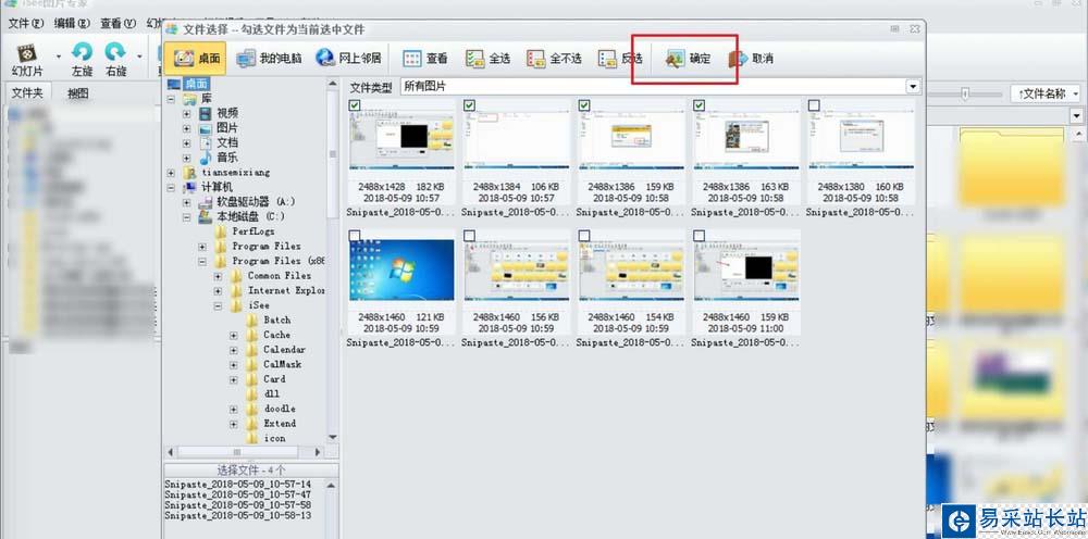5、然后點擊軟件左邊的路徑,選你圖片所在的位置,選擇好了然后點擊圖片左上角的方框,選擇需要合并為視頻的圖,然后點擊確定。
