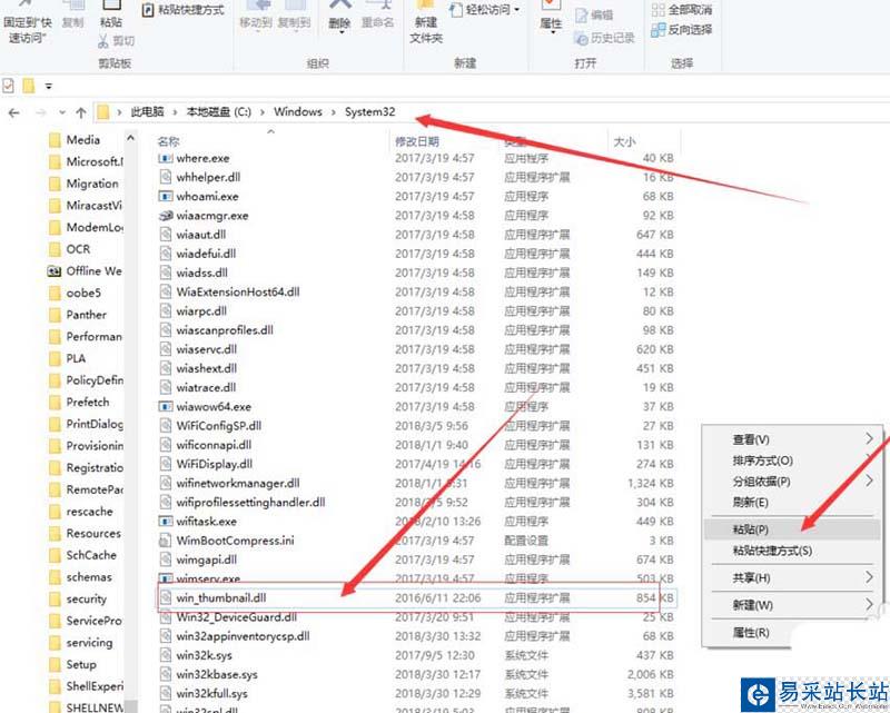 3、打開(kāi)路徑文件夾C:/Windows/System32,粘貼剛復(fù)制的文件放在當(dāng)前文件夾。