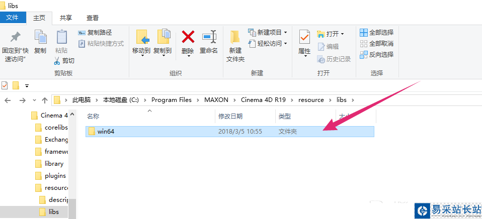 2、打開(kāi)路徑文件夾Cinema 4D R19/resource/libs/win64,找到win_thumbnail.dll進(jìn)行復(fù)制。