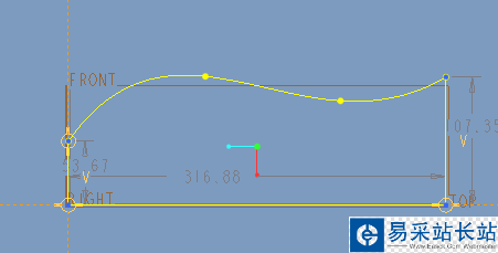 1、打開Pro/E,新建零件,選擇Top面或其它任一基準面草繪封閉曲線如下圖所示,該曲線作為旋轉截面,注意一定要是封閉的。