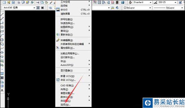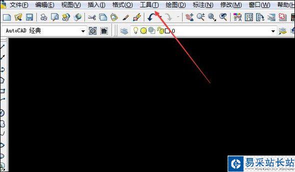 1、首先點擊CAD軟件上方工具欄中的“工具”按鍵。