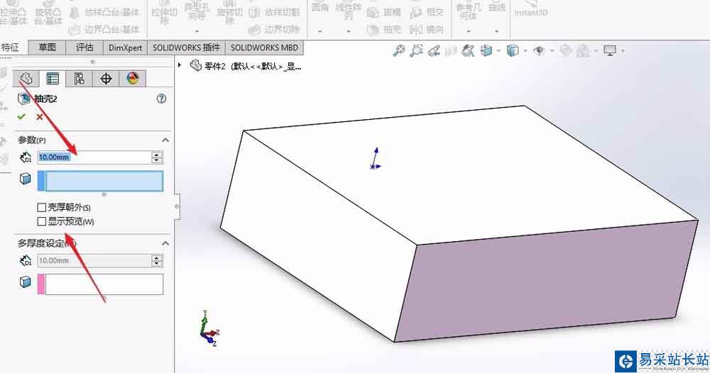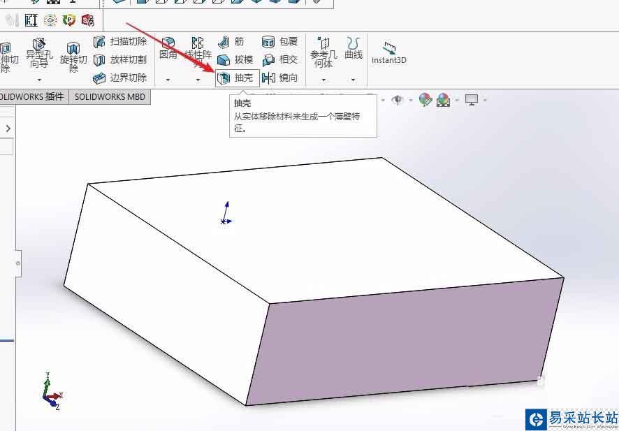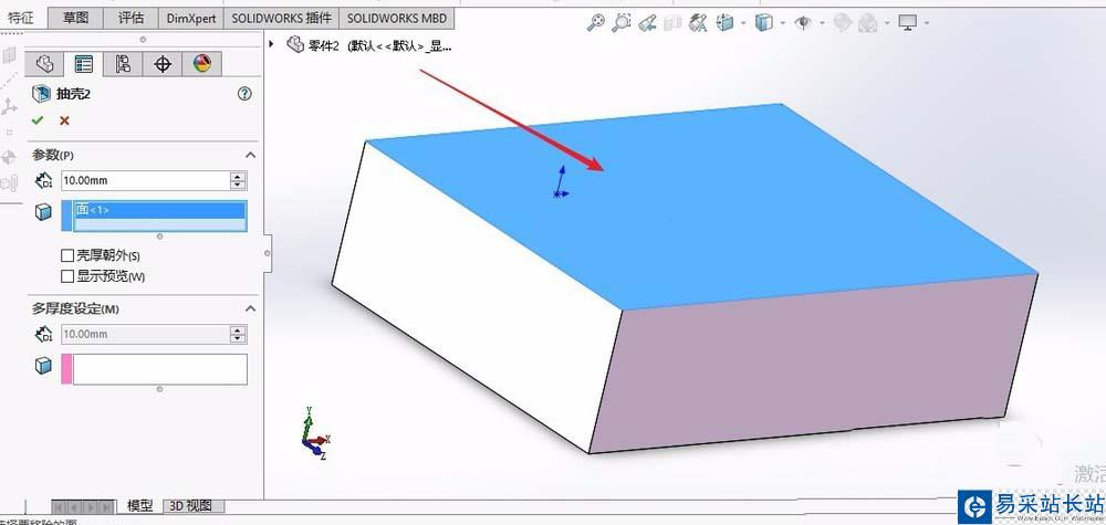 solidworks怎么使用抽殼命令移除面?